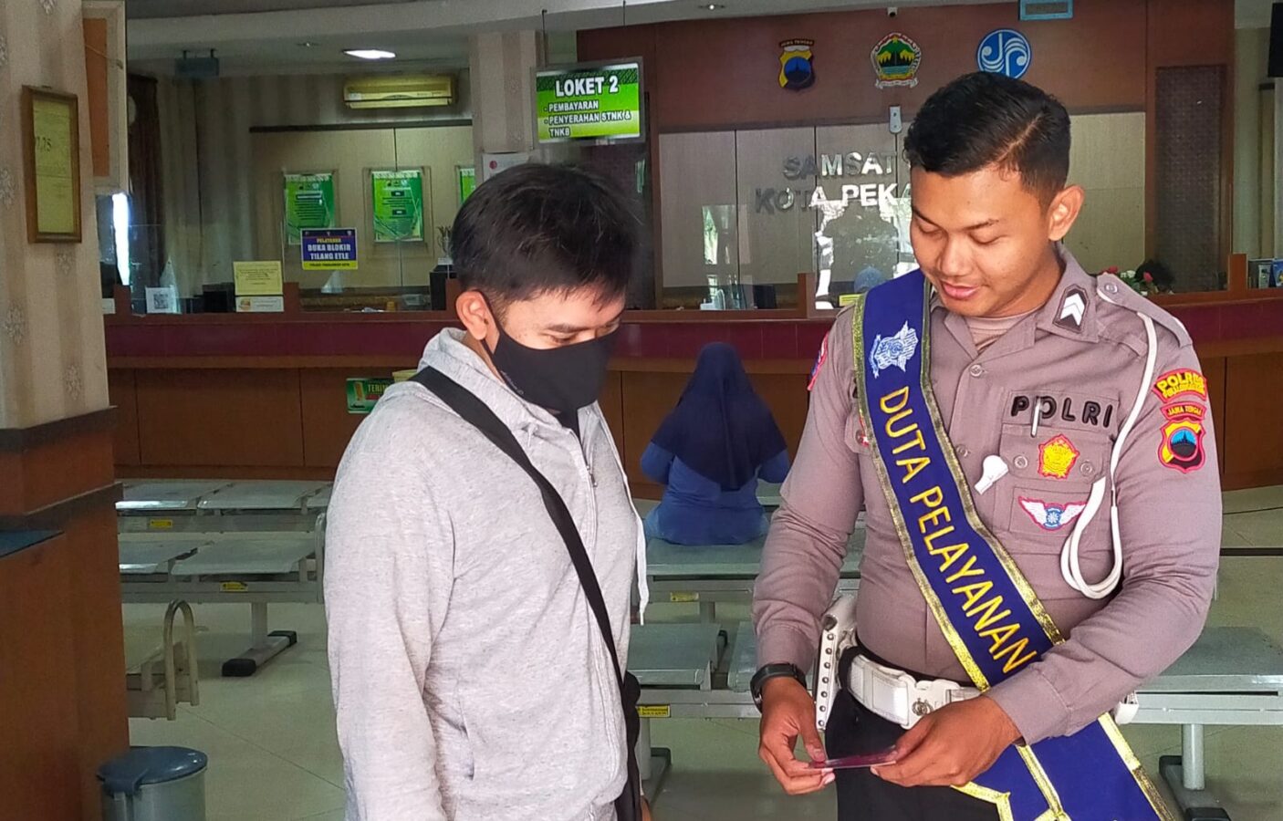 Pekalongan, ERANASIONAL.COM – Satuan Lalu Lintas (Satlantas) Polres Pekalongan Kota kembali menggelar kegiatan “Polisi Menyapa” dengan memberikan sosialisasi langsung kepada masyarakat di Kantor Samsat Kota Pekalongan, Selasa (28/10/2025).