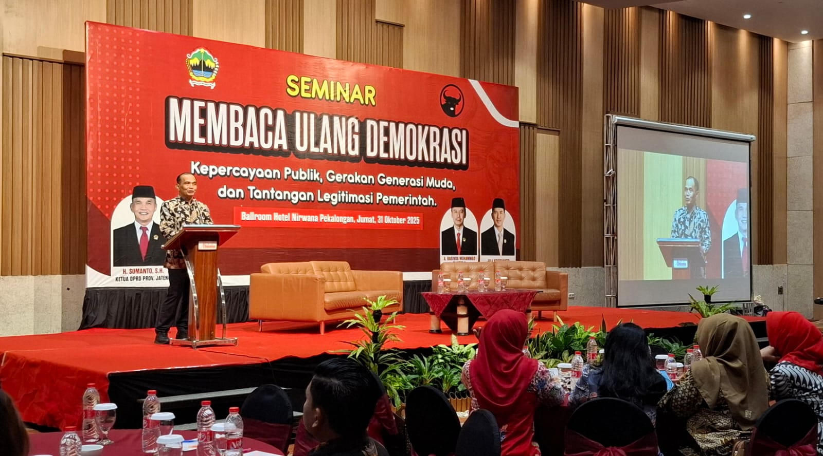 Pekalongan, ERANASIONAL.COM – Demokrasi, kepercayaan publik, dan tantangan legitimasi pemerintah menjadi fokus utama DPRD Jawa Tengah dalam seminar yang digelar bersama Bakesbangpol Jateng di Ballroom Hotel Nirwana Pekalongan pada Jumat (31/10/2025).