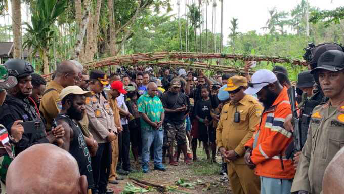 Papua Tengah, ERANASIONAL.COM – Konflik berkepanjangan antara dua kelompok warga di Distrik Kwamki Narama, Kabupaten Mimika, Papua Tengah, akhirnya disepakati berakhir melalui prosesi adat patah panah dan panah babi yang digelar di Kampung Amole, Senin (12/1/2026). Ritual tersebut menjadi simbol perdamaian antara kelompok Dang dan Newegalen, sekaligus penanda berakhirnya rangkaian kekerasan yang sebelumnya meresahkan masyarakat setempat.