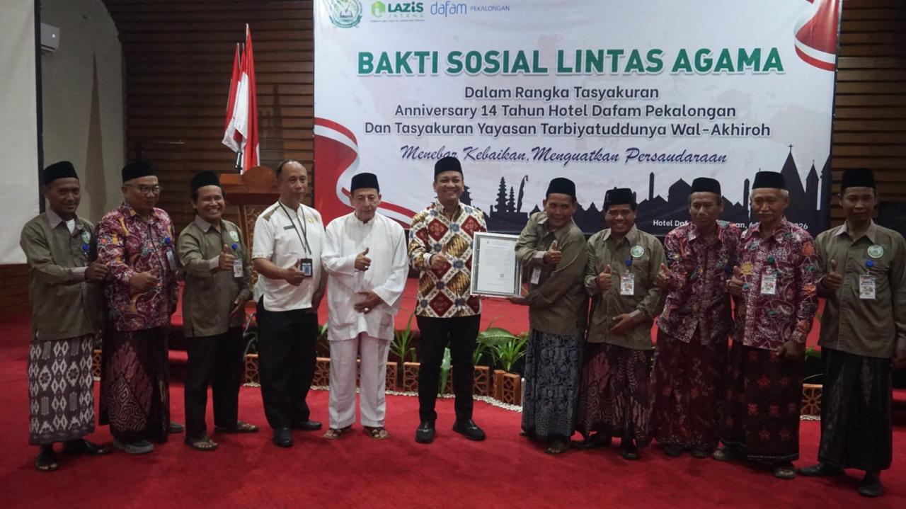 Kegiatan yang menyasar berbagai lapisan masyarakat lintas agama dan sosial ini digelar dalam rangka anniversary Hotel Dafam Pekalongan sekaligus tasyakuran serta pengukuhan pengurus Yayasan Tarbiyatuddunya Wal Akhiroh.